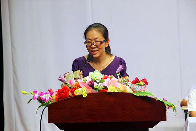 公共教育部的陈宏老师代表全体教师发言。她给新生提了三点期望,她希望大家珍惜时光,掌握好专业技能,努力成长为一个有自信、有担当、懂得尊重的人。