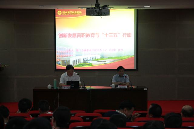 “十三五”时期,是建设福建省现代示范性高等职业院校的关键期,是通过高标准建设推动学院实现精细化内涵发展、跨越式发展的重要时期。为了更好地完成学院“十三五”规划编制工作,进一步明确学院在“十三五”期间的发展定位、发展理念与战略要点,学院于6月1日下午邀请了浙江金融职业学院党委书记、全国高职教育研究会会长周建松教授来我院作了题为《创新发展高职教育与“十三五”行动》的讲座。讲座由陈承茂书记主持,党委副书记沈锦华、纪委书记庄晓钟、副院长张兰英、欧阳少鸣等院领导及全体教职工听取了讲座。