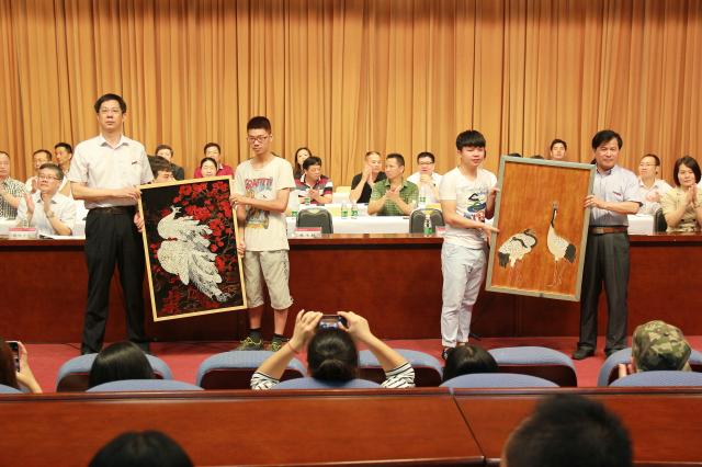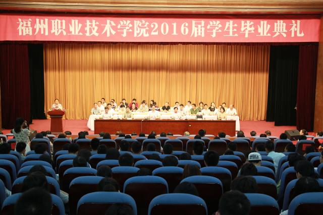 毕业典礼在雄壮激昂的的国歌中拉开帷幕。首先,教务处处长闫丹文同志宣读了《关于2016届学生毕业的决定》;其次,院领导向毕业生代表颁发毕业证书;接着沈锦华副书记宣读学院《关于颁发2015-2016学年颁发毕业班“优秀学生奖学金”的决定》,《关于表彰2015-2016学年毕业班“三好学生”、“优秀学生干部”的决定》,院领导为受表彰的优秀毕业生颁发了荣誉证书。随后,应用外语系13级商务英语专业林蕾同学以及特教毕业生代表人文系13级广告设计与制作专业林怡同学在会上发言,她们代表全体毕业生对学院的领导和老师们三年来的指导和奉献表示感谢。特教生工艺美术班毕业生还向学院献上了亲手制作的两幅漆画作为纪念。教师代表林贤福副教授也在会上作了发言,他表达了全体教师对毕业生的诚挚祝福并寄予了深切厚望。期间,沈锦华副书记宣读了中共福建省委教育工委书记、省教育厅厅长黄红武日前向全省大学生发出的《一封信》,号召同学们能够踊跃报名应征入伍,用青春和热血谱写军旅人生,为实现中华民族伟大复兴的“中国梦”做出应有的贡献。