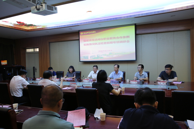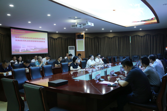 李秋斌校长从契合产业设置专业,闽台合作共育人才;引进台籍高层次人才,积极落实政策待遇等方面汇报了学校贯彻落实《福建省闽台职业教育交流合作条例》的情况。