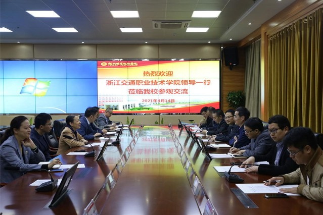 4月14日,浙江交通职业技术学院党委副书记孙常强一行10人,来我校开展考察交流。校党委副书记沈锦华和相关处室负责人参加活动。