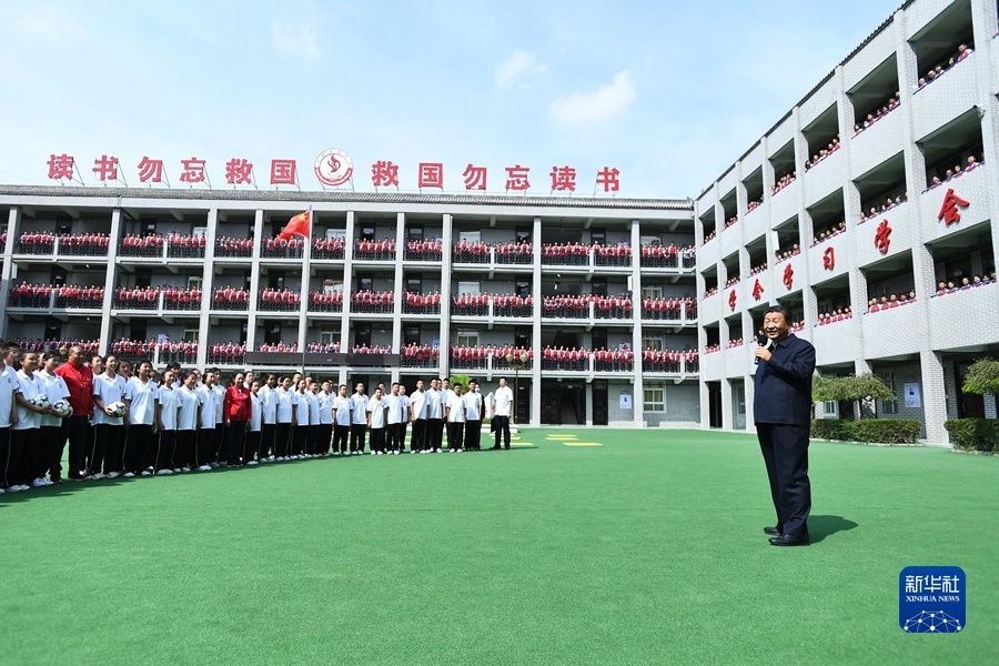 随后,习近平来到绥德实验中学,先后走进教室、操场,观看同学们书法练习和体育锻炼,同大家亲切交流。他指出,中华文明源远流长、绵延不断,基础在教育。实现中华民族伟大复兴,基础在教育。我们办教育,就是要提高人民综合素质,促进人的全面发展,提升社会文明程度,坚定文化自信,增强全民族创造活力。要全面贯彻党的教育方针,落实立德树人根本任务,厚植爱党、爱国、爱人民、爱社会主义的情感,努力培养德智体美劳全面发展的社会主义建设者和接班人。要深化教育教学改革,强化学校教育主阵地作用,全面提高学校教学质量,真正把过重的学业负担和校外培训负担减下来,办好人民满意的教育。最后,习近平勉励同学们珍惜大好年华,修身立德、勤学上进、强健体魄、锤炼意志,做对国家、对人民、对社会有用的人。