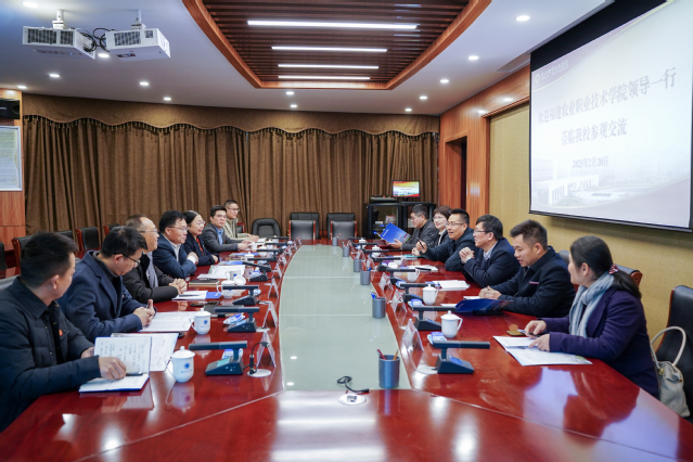 王建生书记对福建农业职业技术学院领导一行的到来表示欢迎,介绍了学校办学特色和近年发展情况,分享了学校联合工业园区推进产业学院建设的经验做法。杨振坦书记对我校在推动产业学院建设、国际学生培养等方面取得的成效给予高度的赞赏,并深入介绍了福建农业职业技术学院推动合并中专学校的实践经验。何东进校长向我校发出诚挚回访邀请,期待两校进一步深化在职业教育领域的合作与交流,携手推动职业教育高质量发展。饶绪黎副校长介绍了学校国际学生培养的相关情况。双方围绕人才培养、校企合作、职教出海等方面进行了深入的交流探讨。